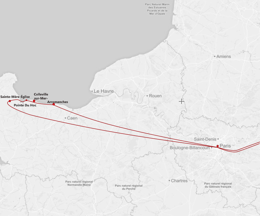 Out of Paris we leave this morning to explore of France's most embattled region and one that had profoundly altered not only its own fate but ultimately our world as we know today. Joined by our local guide upon arrival to Caen, we travel along its northern coast dotted with historical scares that tell us the ultimate story of what we can only understand once we walk its beaches and visit The American Cemetery and Memorial and key sites from Pointe Du Hoc to Sainte-Mère-Eglise and the American Cemetery at Colleville-Sur-Mere. ....